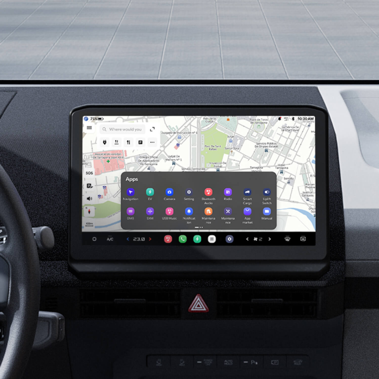 The 12.9" infotainment screen runs on AAOS (Android Automotive OS), giving you a fluid UI and direct access to your favourite Android apps—for both work and play, directly from the driver’s seat.